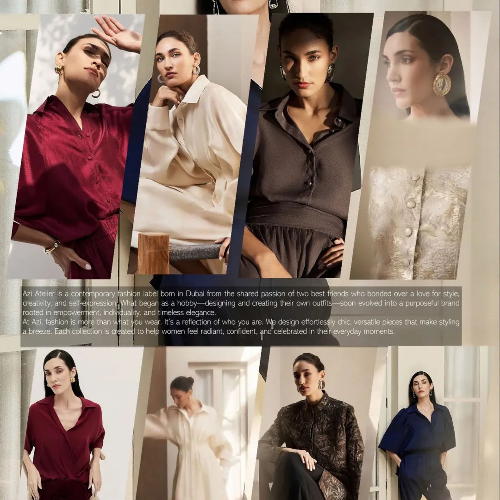 AZI Atelier, founded in Dubai by two ambitious best friends, is more than a fashion label, it’s a movement rooted in optimism, strength, and individuality. We craft timeless, sophisticated designs that honor every woman's uniqueness, encouraging boldness, beauty, and purpose.
