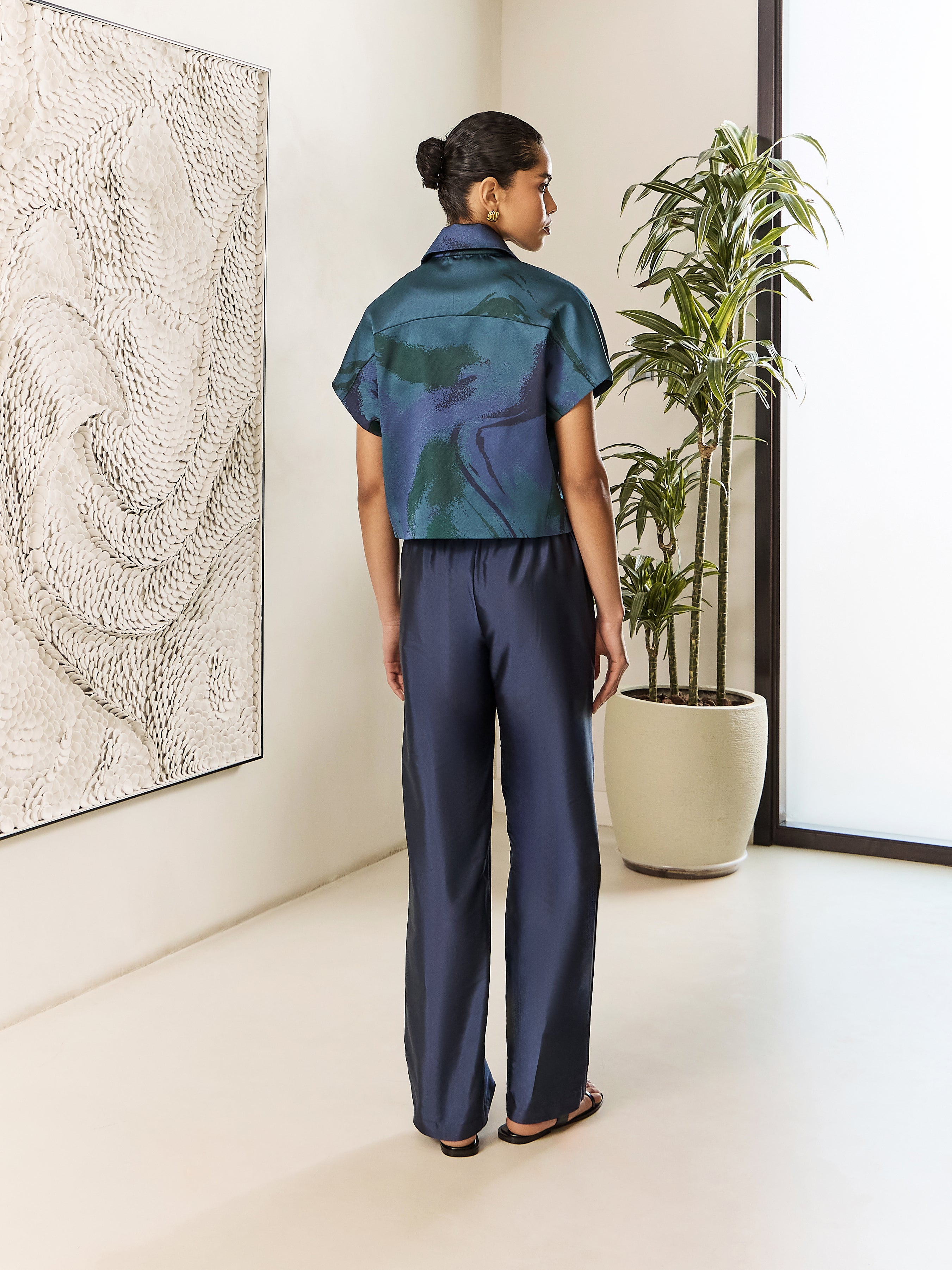 Elegant brocade waistcoat paired with sleek tafta material pants and a